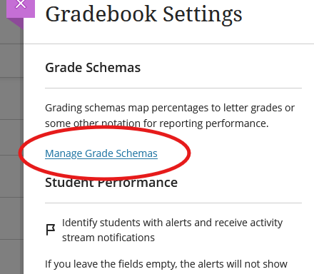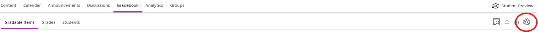 To adjust the grading schema, click on the “Settings” icon on the far right-hand side of the Blackboard Ultra Gradebook screen (see image below).