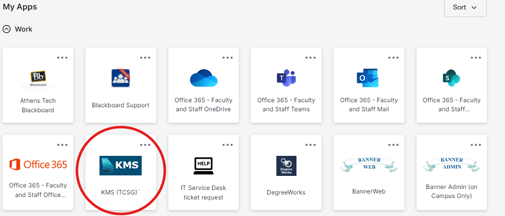 Access the Knowledge Management System (KMS) from your OKTA single sign-on (see image below). NOTE: OKTA tiles may appear in a different order or availability.
